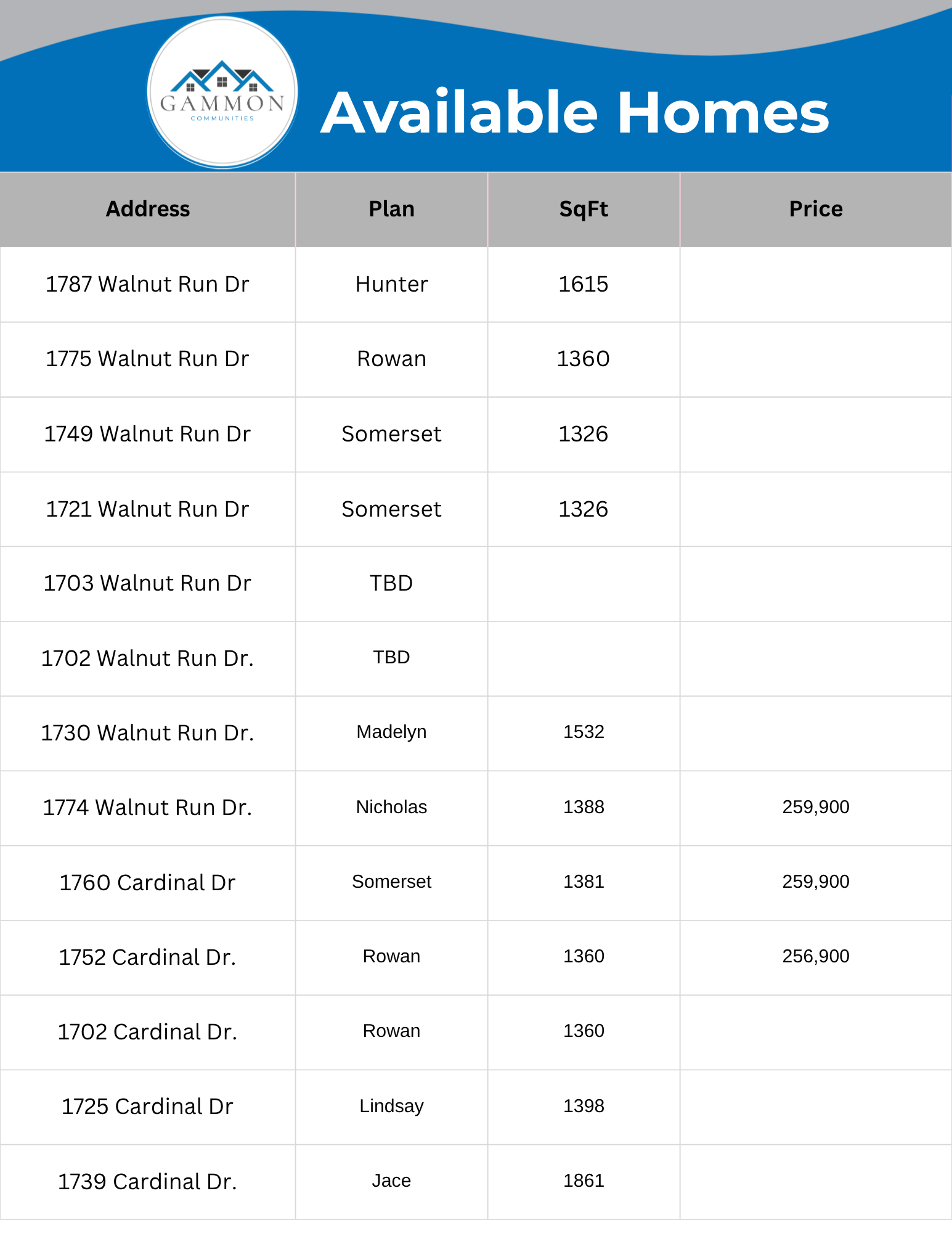 If so, we’re here to help! Contact the Gammon Communities team, your trusted local experts, for answers to all your questions about this charming neighborhood and available homes. We're eager to guide you through every step of the process.