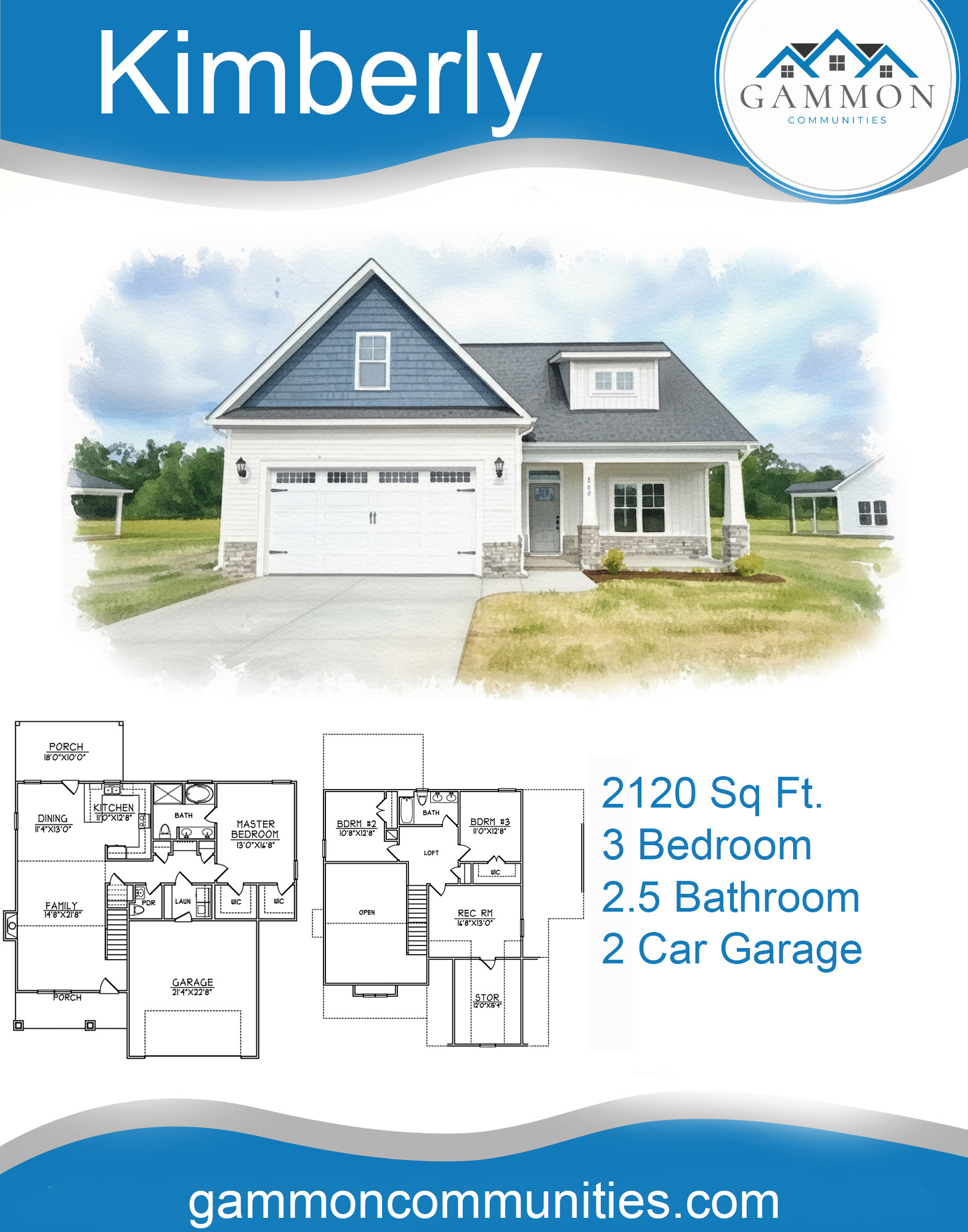Additional features include a two-car garage, covered front and rear porches, separate laundry room, and unfinished storage for extra convenience. Built by Dylaney Homes LLC, the Kimberly Plan is designed for the way you live today.