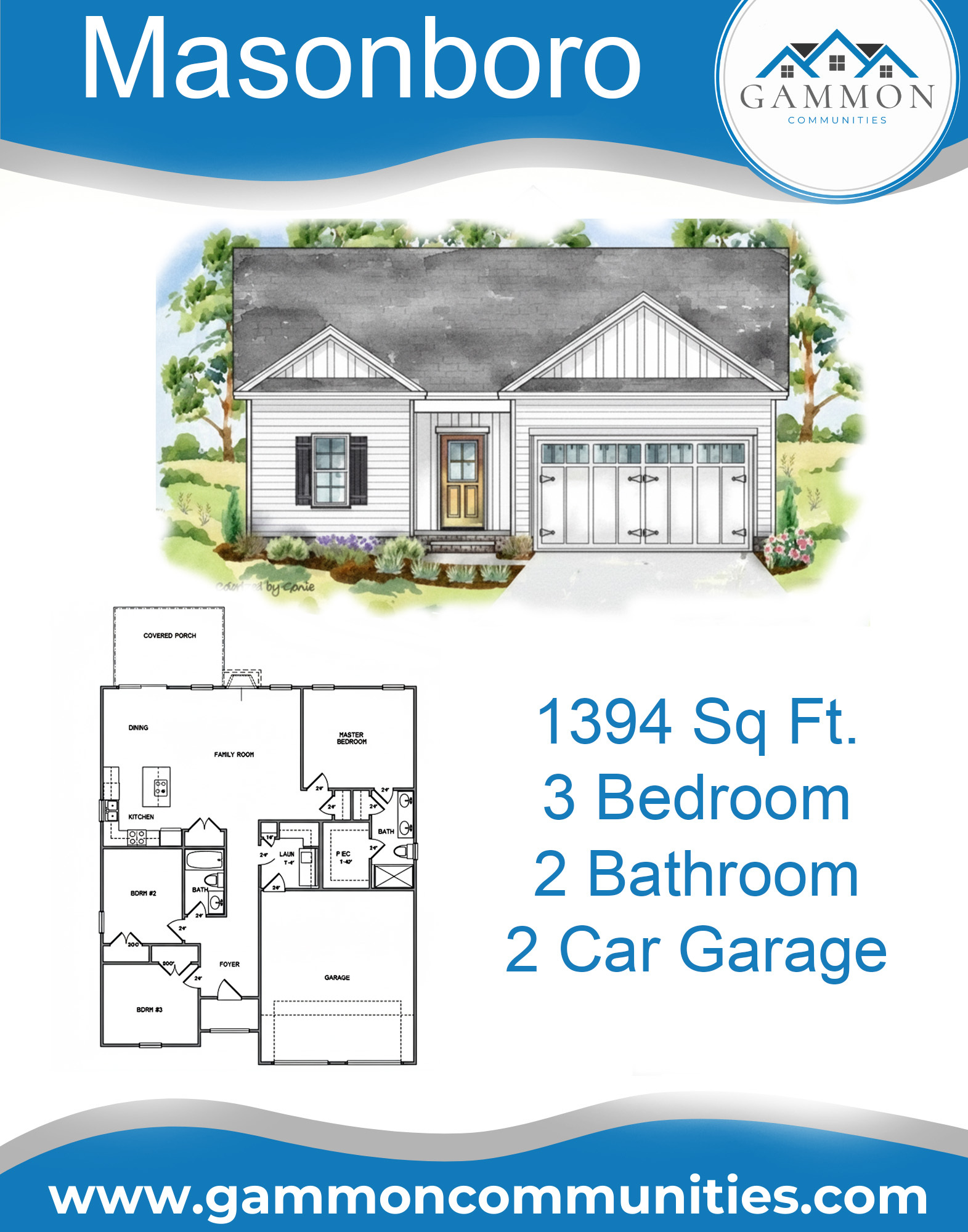 Welcome to the Masonboro Plan—a beautiful new construction home in Massey Farm, where spacious lots and natural surroundings come together for a peaceful lifestyle. This thoughtfully designed split-bedroom layout offers 1,394 sq. ft. of comfortable living space, featuring 3 bedrooms, 2 full baths, and an inviting open floor plan.