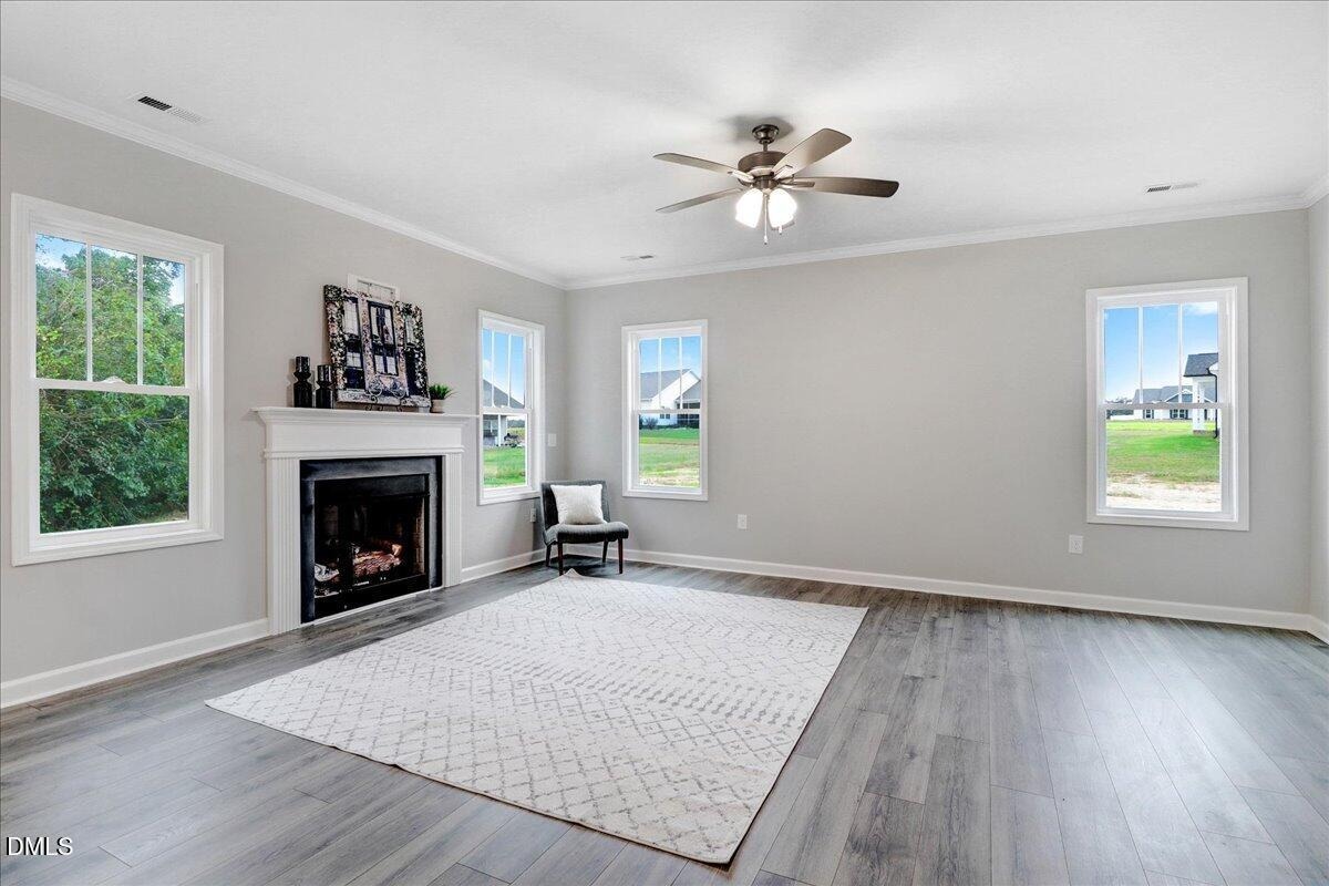Inside, you’ll find approximately 1,938 sq. ft. of carefully planned living space featuring 4 bedrooms and 2.5 baths. The main level showcases a spacious family room with a fireplace and mantle, creating a warm and inviting focal point. The open dining area flows into a gourmet granite kitchen complete with stainless steel appliances, a large breakfast bar, a walk-in pantry, and a built-in microwave—ideal for both everyday meals and entertaining.