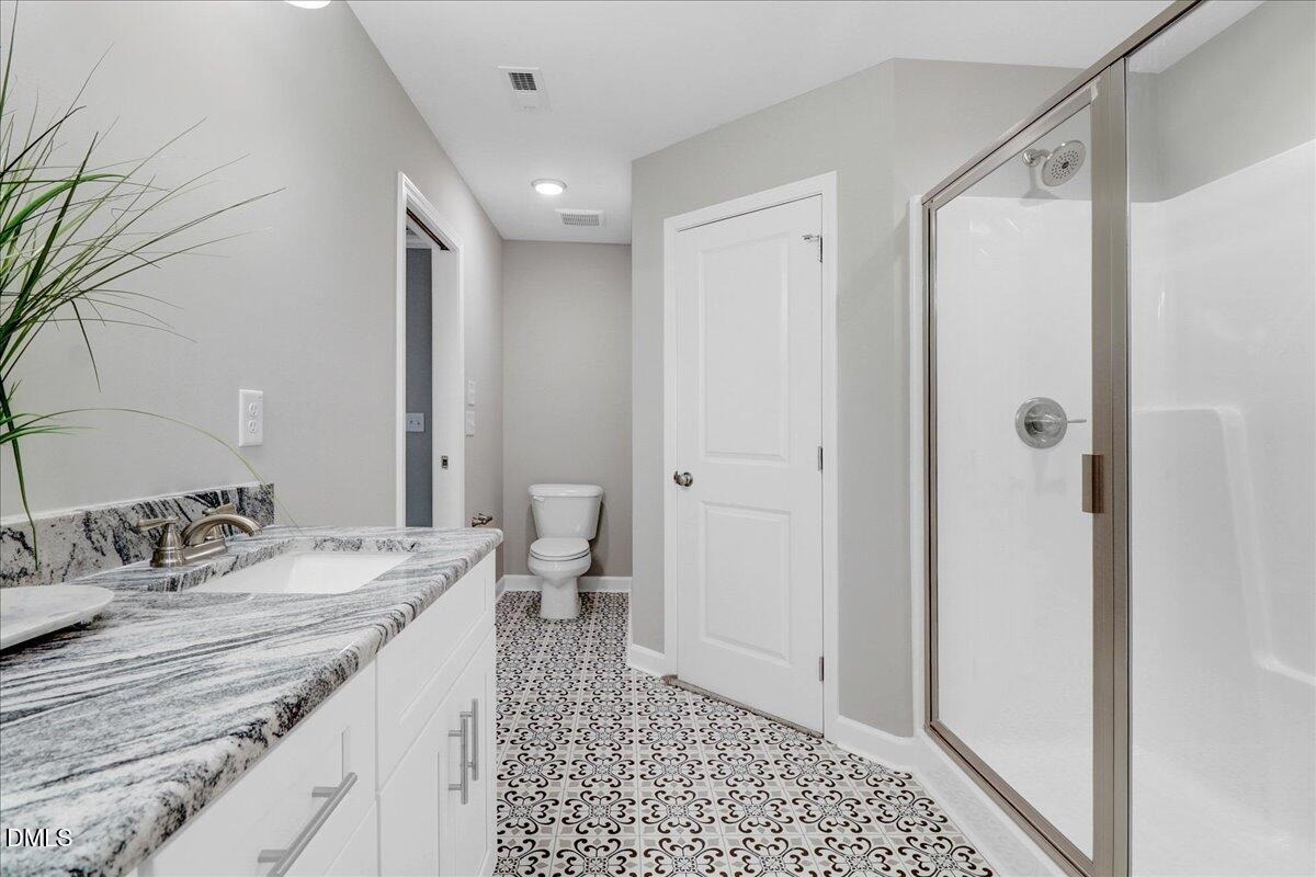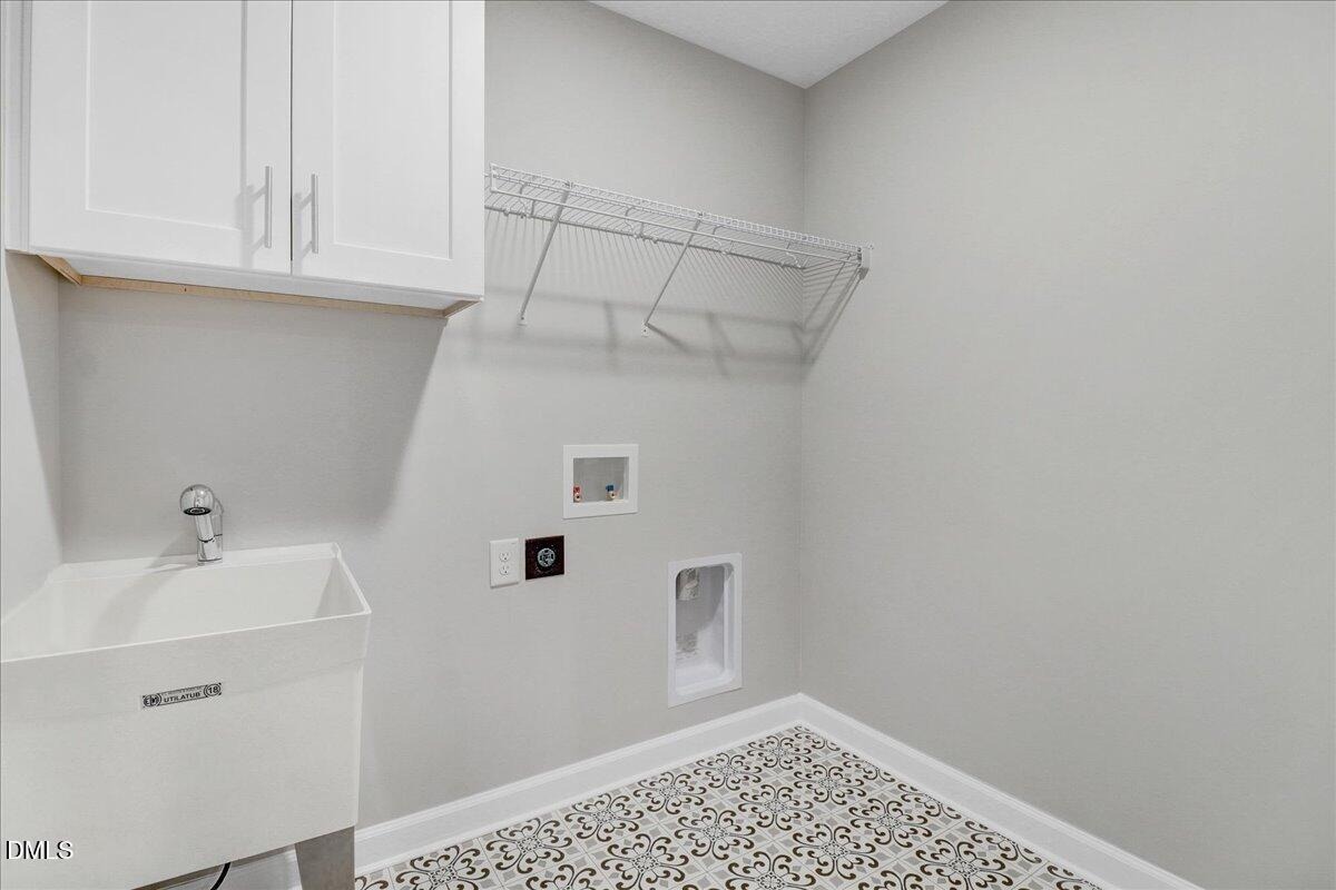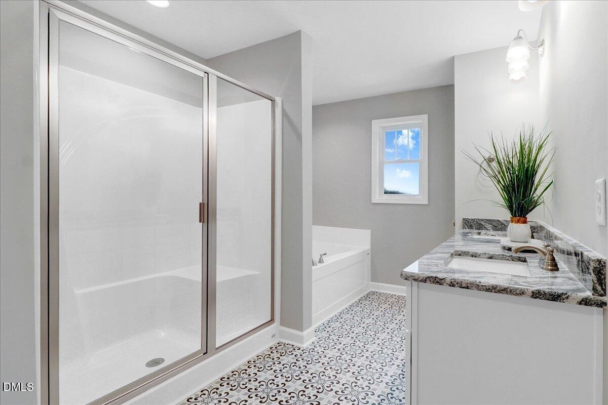 Upstairs, the owner’s suite provides a peaceful retreat with a soaking tub, separate walk-in shower, dual vanities, and a generous walk-in closet. Three additional bedrooms and a full bath offer ample room for family or guests. The laundry room with utility sink is also conveniently located upstairs for easy access.