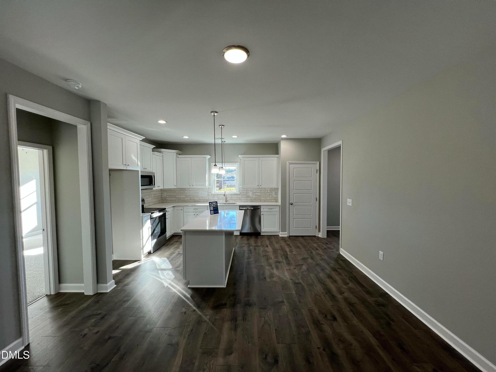 Step inside to an open-concept design that seamlessly connects the living room, dining area, and stone island kitchen, creating a warm and inviting space for everyday living. The kitchen includes stainless steel appliances, a pantry, and plenty of cabinet storage—ideal for meal prep and entertaining alike.