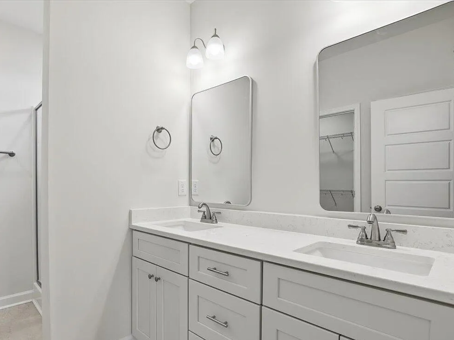 The owner’s suite provides a relaxing retreat with a walk-in closet, dual vanity, and walk-in shower designed for comfort and convenience.
