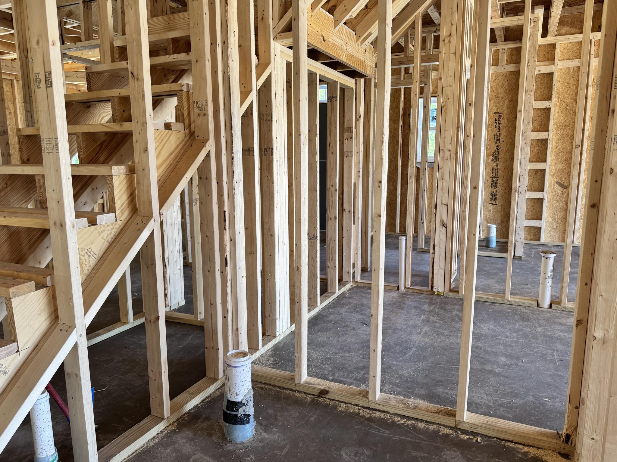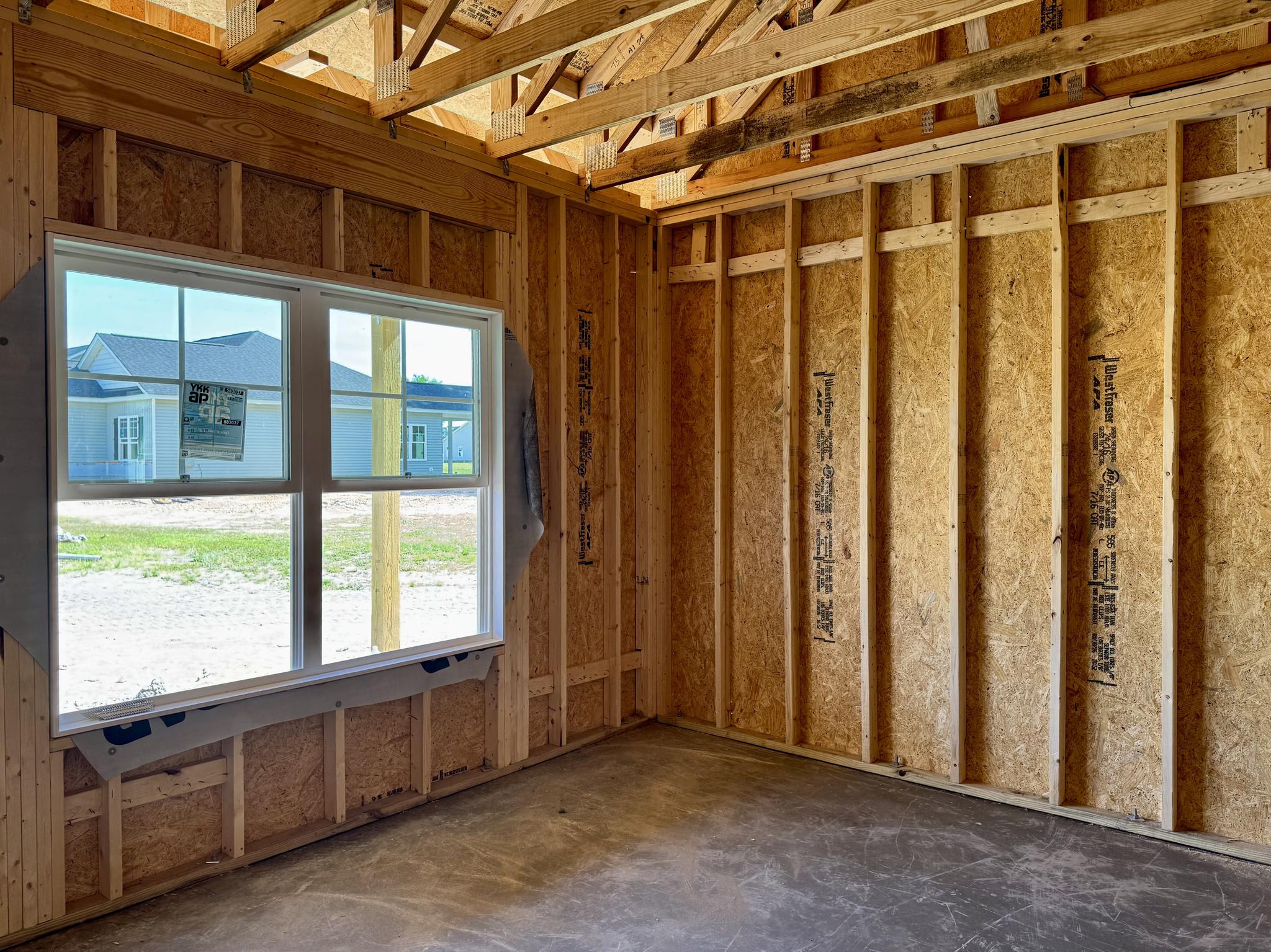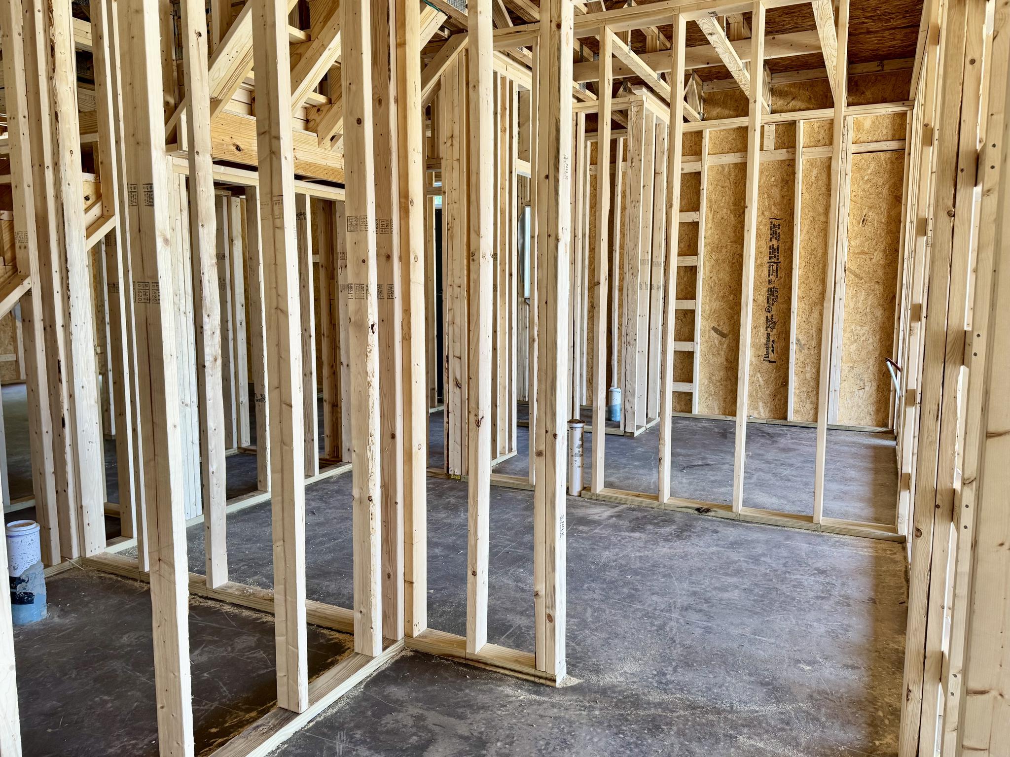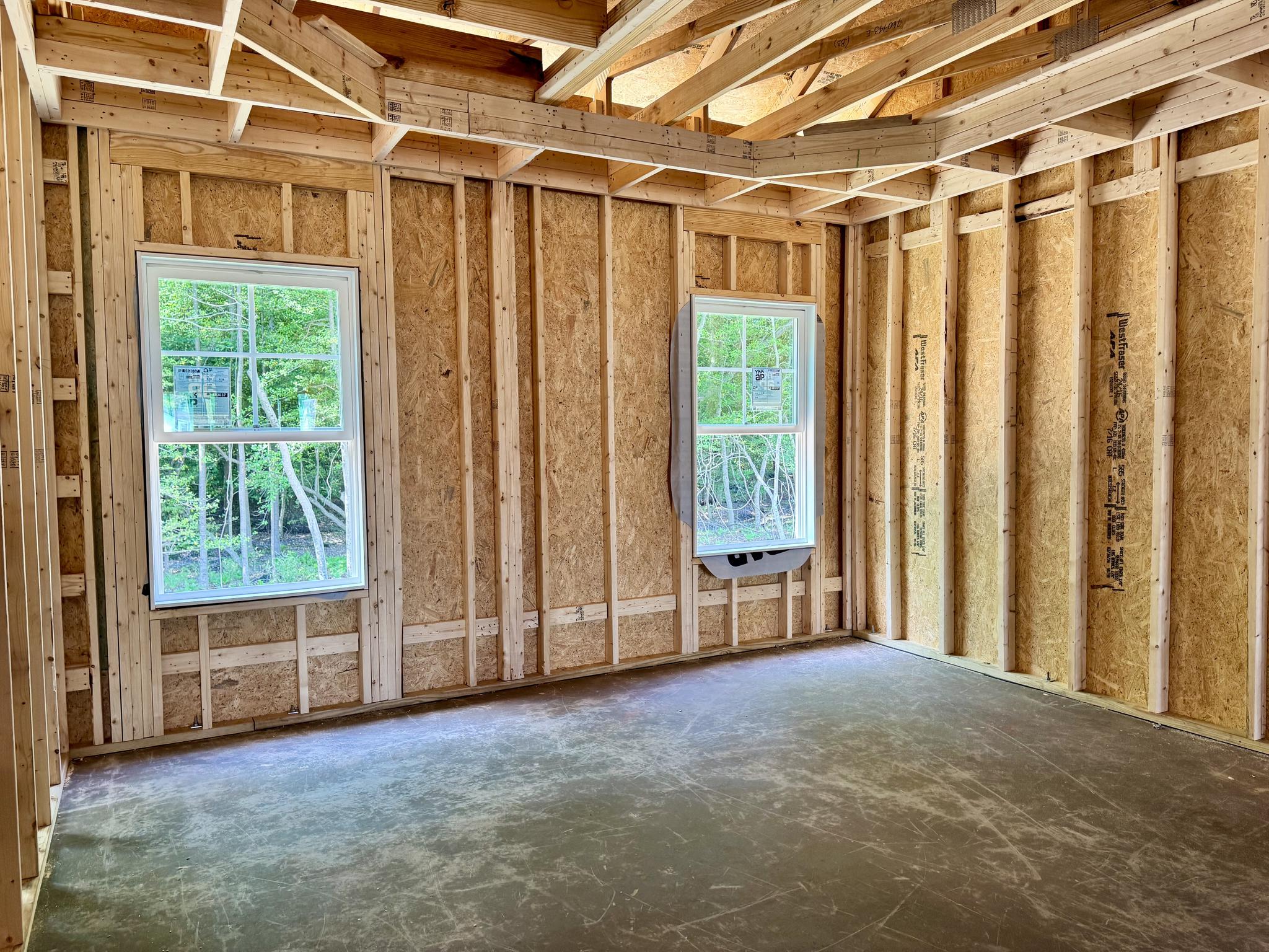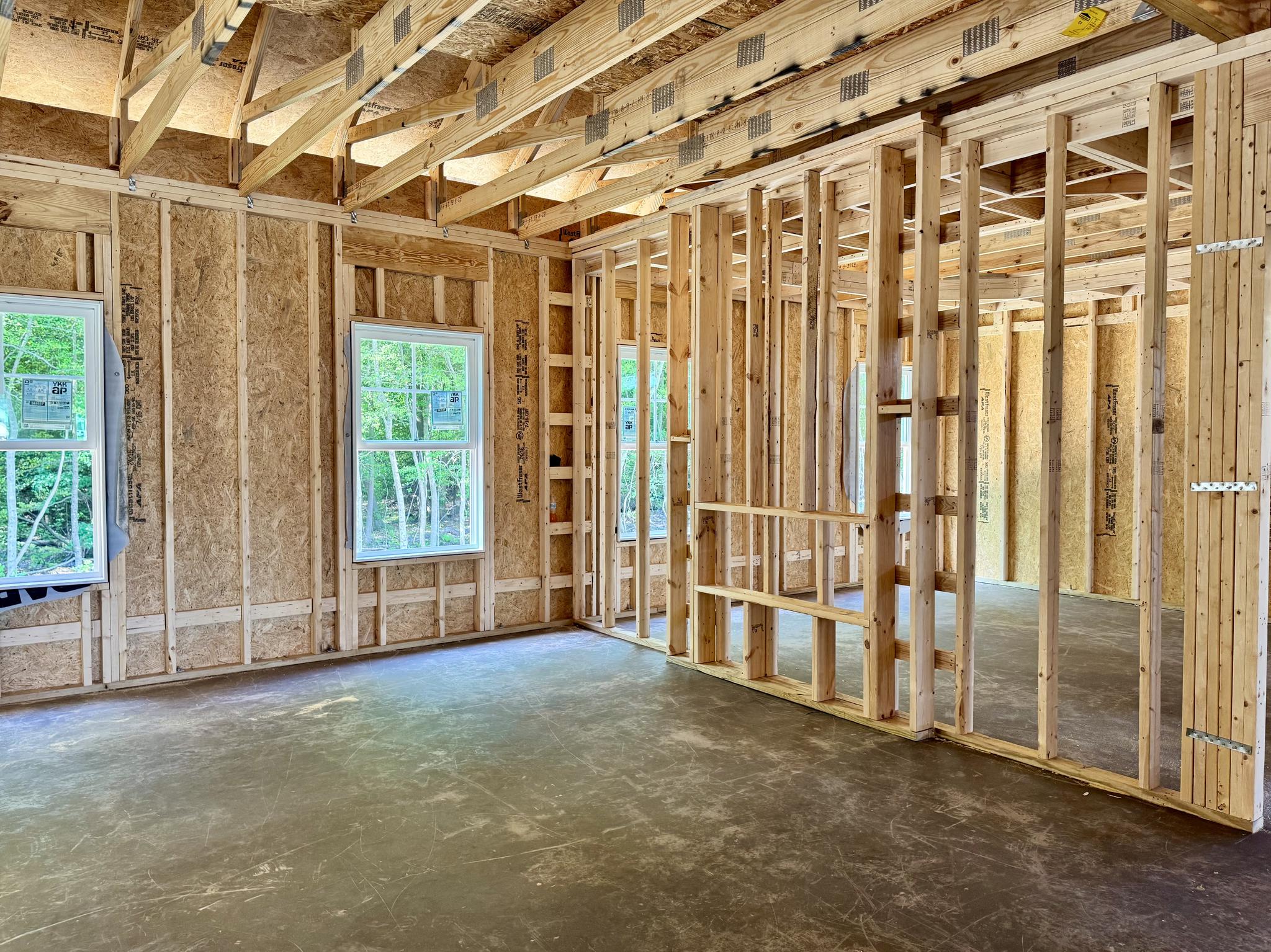 - Wood frame construction on slab foundation