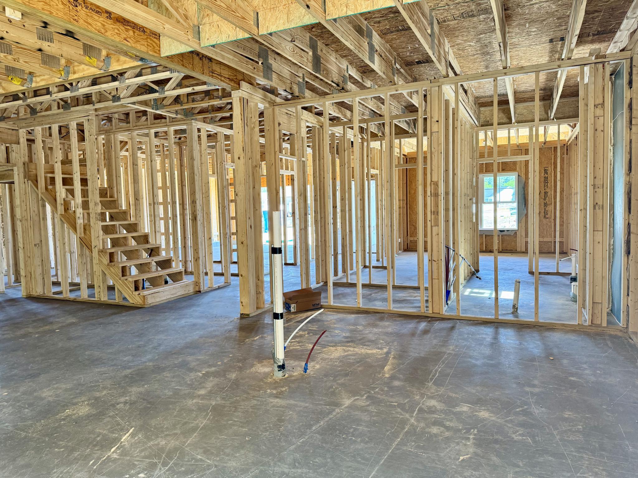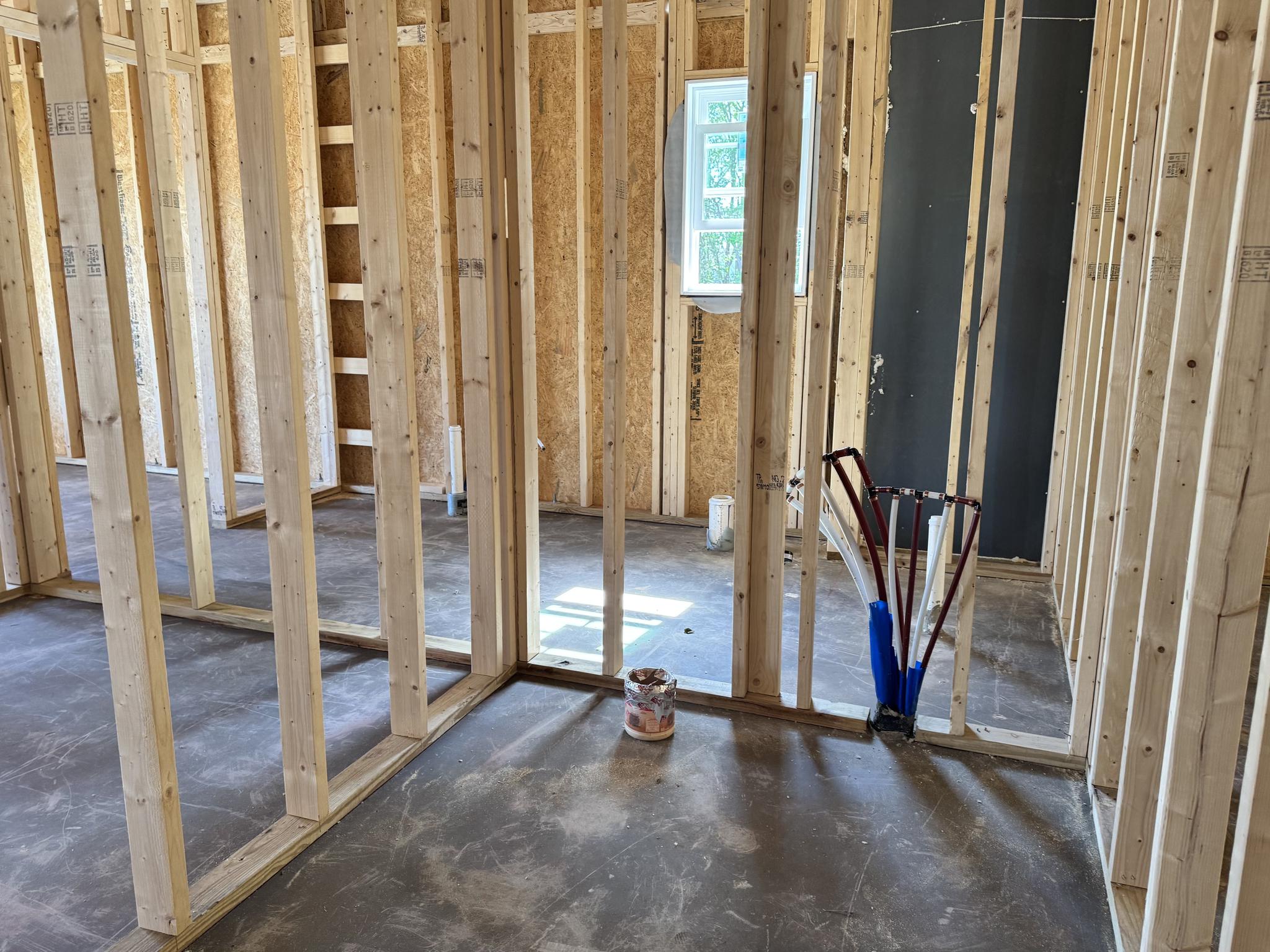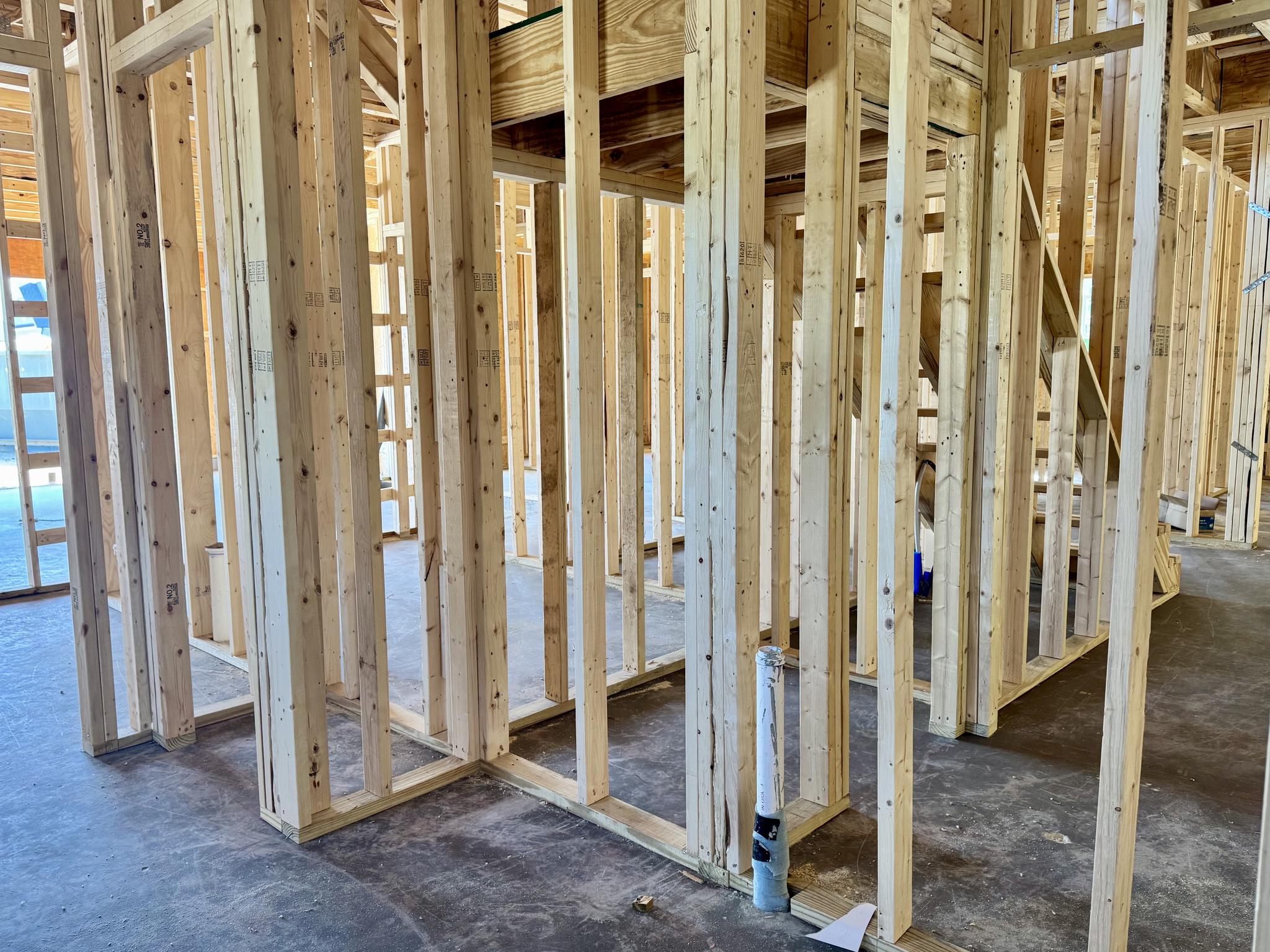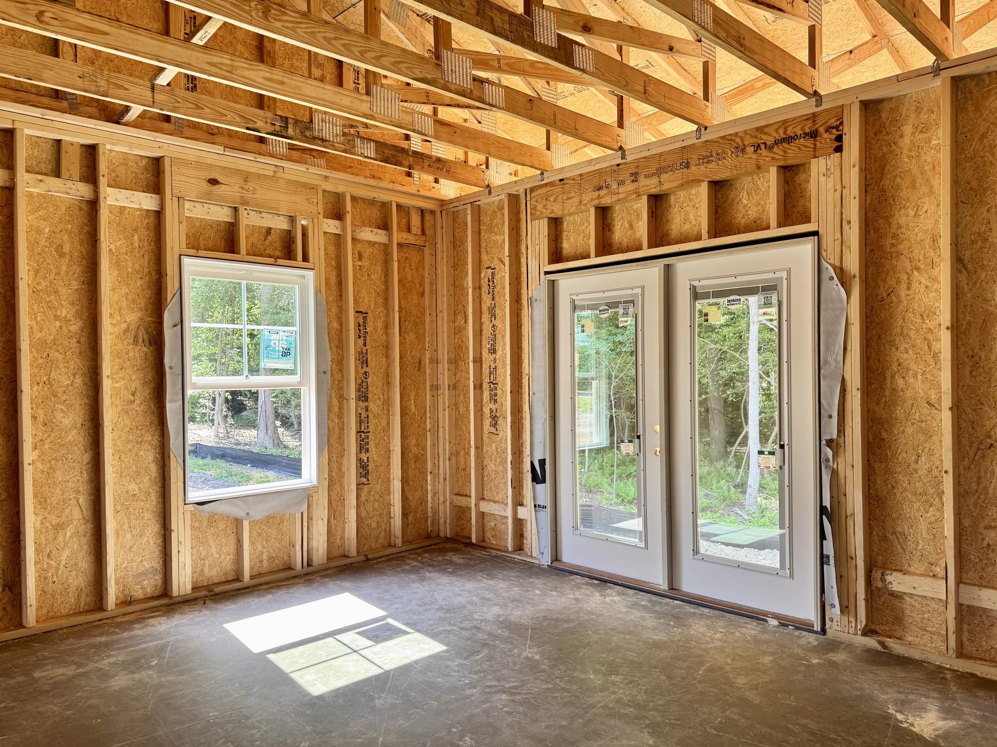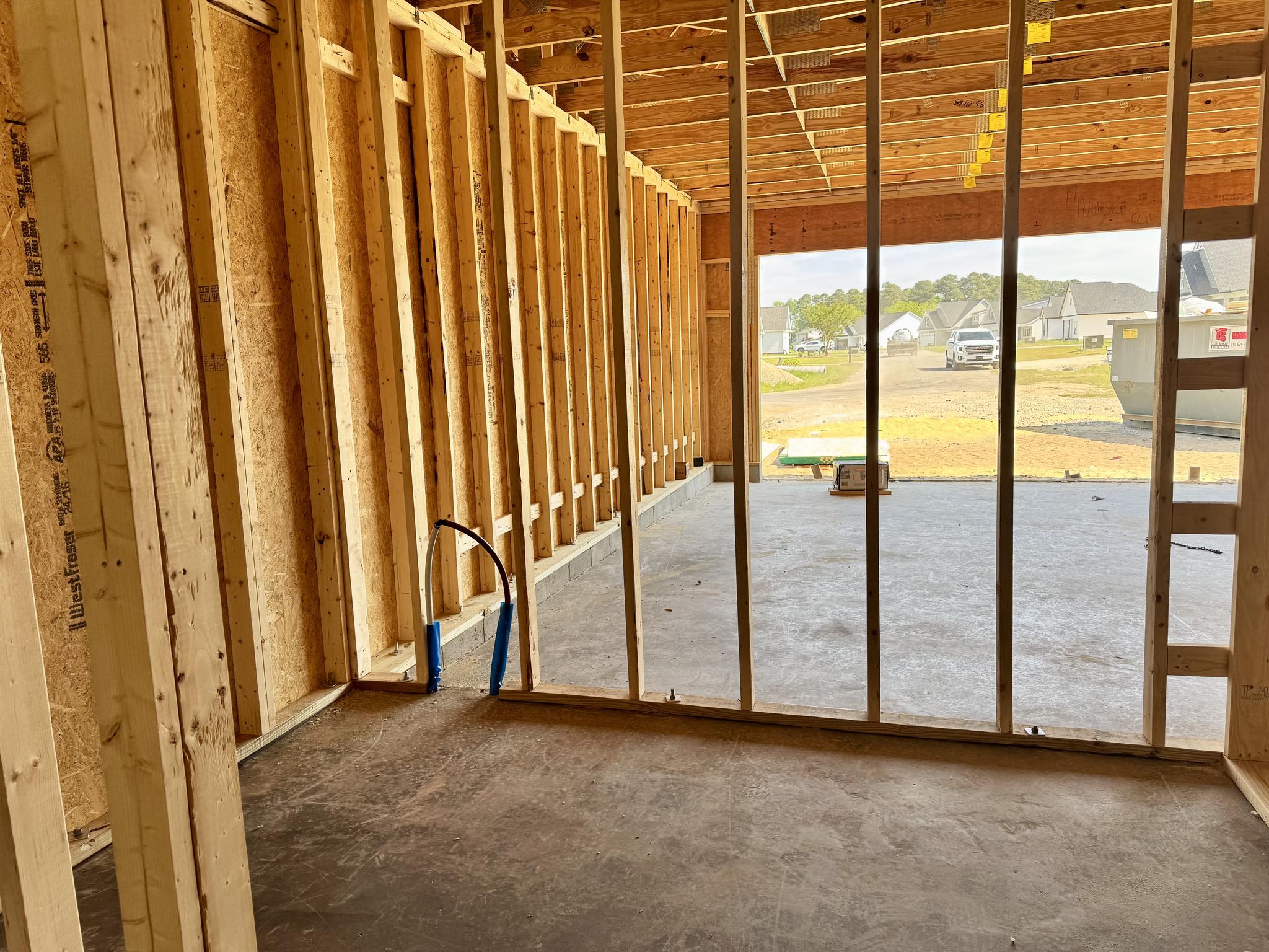 - Wood frame construction on slab foundation